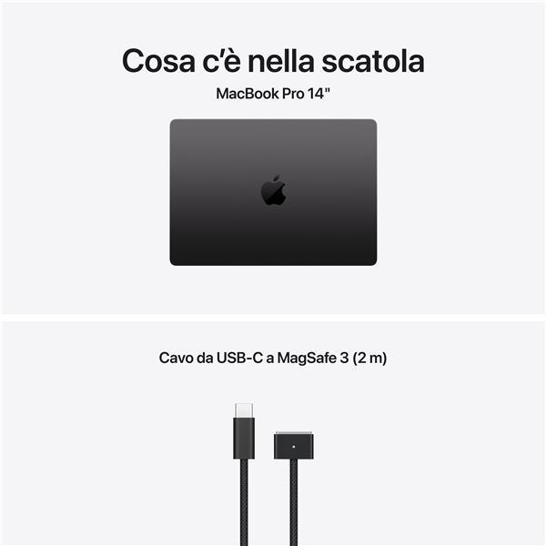 Apple MacBook Pro 14″ M5 (10-core CPU, 10-core GPU), 16GB di memoria unificata e SSD da 512GB in colore Nero Siderale è il notebook professionale definitivo per chi cerca prestazioni elevate, autonomia incredibile e potenza AI on-device. Grazie ai superpoteri del chip M5, offre una velocità sorprendente in ogni attività: dal lavoro quotidiano alla creazione di contenuti avanzati, dallo studio alle app che utilizzano l’intelligenza artificiale.