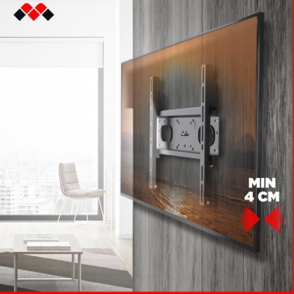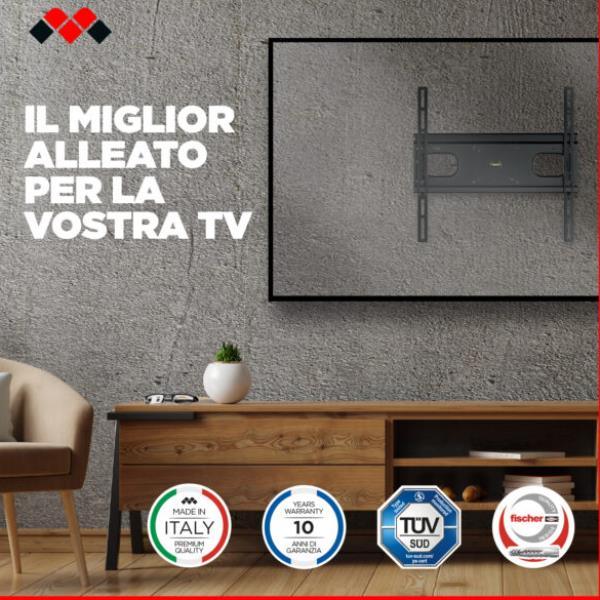 Il modello 400 F è un supporto tv parete fisso con foratura VESA 200 – 300 – 400 mm, adatto alle TV di medio e grande formato (massimo 65″). Da oggi è disponibile anche come supporto tv per cartongesso, garantendo la massima versatilità e sicurezza per l’installazione su pareti delicate.