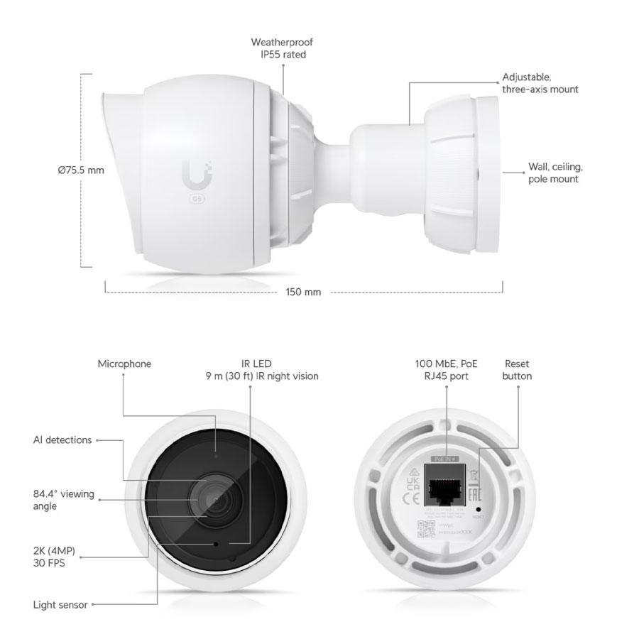 UniFi Camera G5 Bullet (UVC-G5-Bullet) è una telecamera di nuova generazione progettata per garantire monitoraggio sicuro e dettagliato in ambienti interni ed esterni. Fa parte della linea UniFi Protect, integrandosi facilmente con l’ecosistema UniFi per una gestione centralizzata e scalabile.